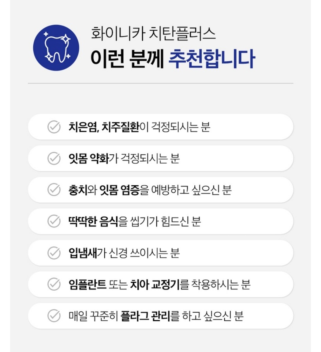 A1. 잇몸이 자주 붓거나 피가 나는 분, 구취로 고민 중인 분에게 추천됩니다.